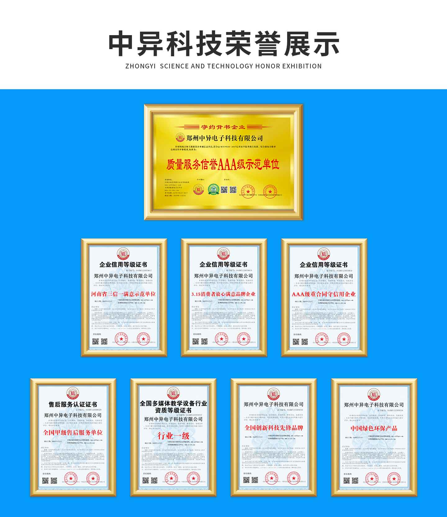 中异电子科技专注从事交互式教学一体机、智慧黑板、电子班牌、智慧录播教室、教室护眼灯等高科技教育产品的研发、生产、销售及售后服务工作。公司秉承专注教育、服务教育的理念。